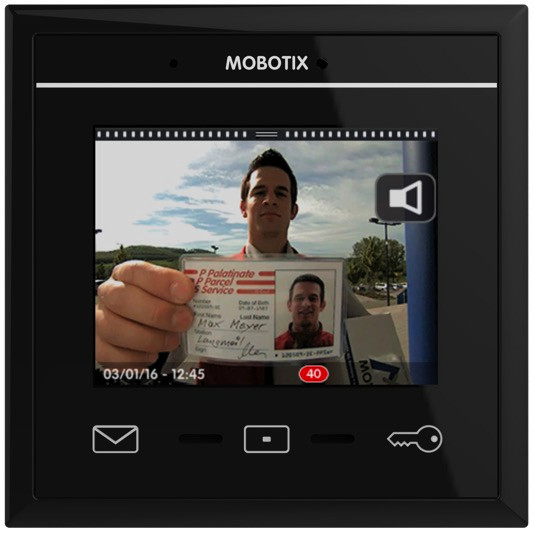 MxDisplay+ mit zweiter CPU-Generation - Indoor-Gegenstelle für MOBOTIX Türstationen und Videosysteme - Voll-Duplex-Freisprechen, HD-Audio mit Echo-/Rauschunterdrückung und automatischer Lautstärkeanpassung - Ambilight Sensor - 3 Eingänge, 1 Relaisausgang, Anschluss für externen Temperatursensor und MxBus (MxMessageSystem) - Ethernet, RFID und WLAN - 1x Admin-Karte - Montagezubehör - Rahmen und Unterputzgehäuse separat bestellbar (z. B. FlatMount Frame MX-OPT-FlatMount-EXT-BL) - Farbe: Schwarz