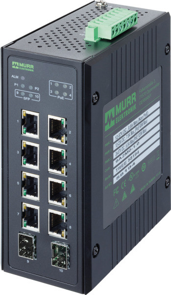Power over Ethernet ermöglicht einen erheblichen Installationsvorteil. PoE Kameras oder PoE Panel PC, die bislang mit zwei Leitungen verbunden wurden, um Daten zu übertragen und eine Versorgung mit Energie sicherzustellen, müssen nur noch mit einer Leitung angeschlossen werden. Diese überträgt Daten und Energie. Voraussetzung für ein solches Konzept sind PoE-Switches, da sie diese zeitsparende Verdrahtungstechnologie unterstützen. Murrelektronik bietet mit den Komponenten der Baureihe TREE die richtige Lösung. Mit einer Bandbreite von fünf bis acht Ports und der Möglichkeit, sowohl 24 V wie auch 48 V einzuspeisen, können die Anwender den optimal für ihre Applikation passenden Switch auswählen. Ein großer Vorteil von PoE ist, dass man keine besonderen Leitungen benötigt: Für die Installation genügen Standardkabel mit acht Adern in Kombination mit RJ45-Steckverbindern. Je nach Applikation können Netzgeräte eingespart werden.