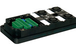 MVP12, 4xM12, 5pol, steckb. Klemme ohne Haube, mit Pot. Trennung, NPN-LED's