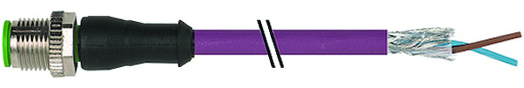 M12 St. 0° B-kod. freies Ltg-ende geschirmt PUR 1x2xAWG24 geschirmt vt UL/CSA+schleppk. 5m