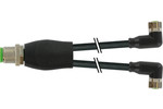 Y-Verteiler M12 St. / M8 Bu. 90° A-kod. PUR 3x0.25 sw UL/CSA+schleppk. 2m