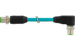 M12 St. 0° / M12 St. 90° D-kod. geschirmt TPE 2x2x24AWG SF/UTP CAT5e bl UL/CSA, CM 1m