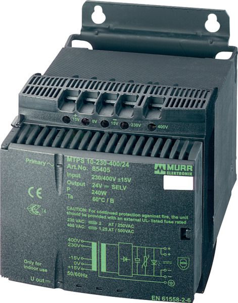 MTPS Trafonetzgerät 1/2-phasig, gesiebt IN: 230/400+/-15VAC OUT: :24V/1ADC Für Schraub-und Tragschienenbefestigung