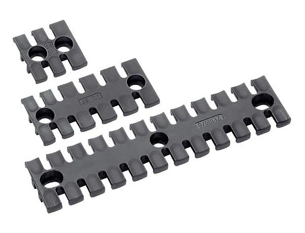 Zugentlastung-Zugentlastungen-Die Zugentlastungsleiste ZL kann überall dort eingesetzt werden, wo Leitungen, Kabel, Einzeladern oder Schläuche sicher, einfach und kostengünstig zugentlastet oder geführt werden müssen. Die Einlegebuchse ELB verhindert Kaltfließeigenschaften an den Befestigungen der Zugentlastung. Zum doppelstöckigen Aufbau wird die Distanzhülse DH benötigt. Zugelassen in der Bahntechnik (EN 45545-2) -ZL 140: Schwarz.
