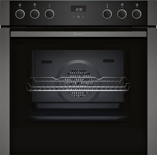 Backofentyp und Heizart Einbauherd mit 7 Beheizungsarten: Circo Therm®, Ober-/Unterhitze, Thermogrill, Großflächengrill, Pizzastufe, Unterhitze, Circo Therm® sanft Temperaturregelung von 50 °C - 275 °C Garraumvolumen: 71 l Zubehörträger / Auszugssystem: Einschubebenen: 4 Auszug nachrüstbar Design Graphite-Grey Edition Drehwähler, rund, Voll versenkbare Bedienknebel Garraum: Email anthrazit Reinigung Easy Clean (Reinigungshilfe): Leichte Verschmutzungen entfernen mit Wasserdampf und Spülmittel. Vollglas-Innentür Komfort LCD Display (weiß), mechanische Steuerung Elektronik-Uhr Optische Aufheizkontrolle Autostart Klapptür Profilgriff Klapptür mit Soft Close und Soft Opening: Sanftes Öffnen und Schließen der Backofentür. Schnellaufheizung: Schnell zur Zieltemperatur ohne höheren Energieverbrauch Halogenleuchte Kühlgebläse Zubehör Kombirost 1 x Universalpfanne Umwelt und Sicherheit Sehr geringe Fenstertemperatur 3-fache Türverglasung Individuell einstellbare Kindersicherung Technische Info Nur kombinierbar mit einem herdgebundenen Kochfeld Nennspannung: 220 - 240 V Gesamtanschlusswert Elektro: 11.2 kW Energieeffizienzklasse (gem. EU Nr. 65/2014): A+(auf einer Energieeffizienzklassen-Skala von A+++ bis D) Energieverbrauch pro Zyklus im konventionellen Modus: 0.94 kWh Energieverbrauch pro Zyklus im Umluft-Modus: 0.69 kWh Zahl der Garräume: 1 Wärmequelle: elektrisch Innenraumvolumen: 71 l Maße Gerätemaße (HxBxT): 595 x 594 x 548mm Nischenmaße (HxBxT): 604 mm x 560 mm x 550 mm „Maße und Einbauhinweise zu diesem Gerät gemäß technischer Zeichnung beachten“