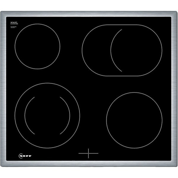 Glaskeramik-Kochfeld M13R42N2: 4 Kochzonen, davon 1 Zweikreis- und 1 Bräterzone, Restwärmeanzeige je Kochzone, umlaufender Rahmen,