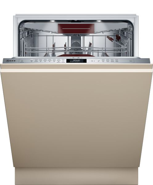 Leistung und Verbrauch Energieeffizienzklasse¹: A Energie² / Wasser³: 54 kWh / 9 Liter Fassungsvermögen: 14 Maßgedecke Programmdauer4: 4:30 (h:min) Geräusch: 42 dB(A) re 1 pW Geräusch-Effizienzklasse: B Geräusch im Silence-Programm: 41 dB(A) re 1 pW Programme und Optionen 8 Programme: Eco 50 °C, Auto 45-65 °C, Chef 70 °C, Classic 60 °C, Schnell 45 °C, Glas 40 °C, Silence 50 °C, Favorit Vorspülen 4 Sonderfunktionen: Fernstart, Extra Shine, Power Zone, Extra Speed EasyClean Add-On Funktion über die Home Connect App: HygienePlus, Silence on Demand Spültechnik und Sensorik Open Dry (Eco Trocknung) mit Wärmetauscher Aquasensor Dosier Assistent EfficientSilentDrive Reiniger-Automatik Selbstreinigendes Sieb mit 3-fach Wellen-Filtersystem Innenbehälter/ Boden: Edelstahl/Edelstahl Korbsysteme Flex 2 Korbsystem mit farbigen verstellbaren Elementen Flex Schublade Höhenverstellbarer Oberkorb mit RackMatic® (3-stufig) Leichtlaufrollen im Oberkorb Komfortrollen im Unterkorb farbige Anti-Rutsch-Beschichtung im Oberkorb Korbstopper (Rack Stopper) gegen ein Überrollen des Unterkorbes Klappbare Tellerhaltereihen im Oberkorb (6x) Klappbare Tellerhaltereihen im Unterkorb (6x) Tassenablage im Oberkorb (2-teilig) Tassenablage im Unterkorb (2-teilig) Antirutschsicherung weinrot für Gläser im Oberkorb Gläseranlagebügel im Unterkorb Anzeige und Bedienung Touch Bedienung Bedienung von oben Bedienblende mit Klartext (englisch) Home Connect-fähig über WLAN Time Light Emotion Light Restzeitanzeige in Minuten Startzeitvorwahl 1-24 Stunden Akustisches Signal bei Programmende Technische Informationen und Zubehör Aqua Stop: eine Neff Garantie bei Wasserschäden - ein Geräteleben lang* Integrierter Glasschutz Salzeinfüllhilfe (Trichter) Inkl. Dampfschutz für die Arbeitsplatte Gerätemaße (H x B x T): 86.5 cm x 59.8 cm x 55.0 cm