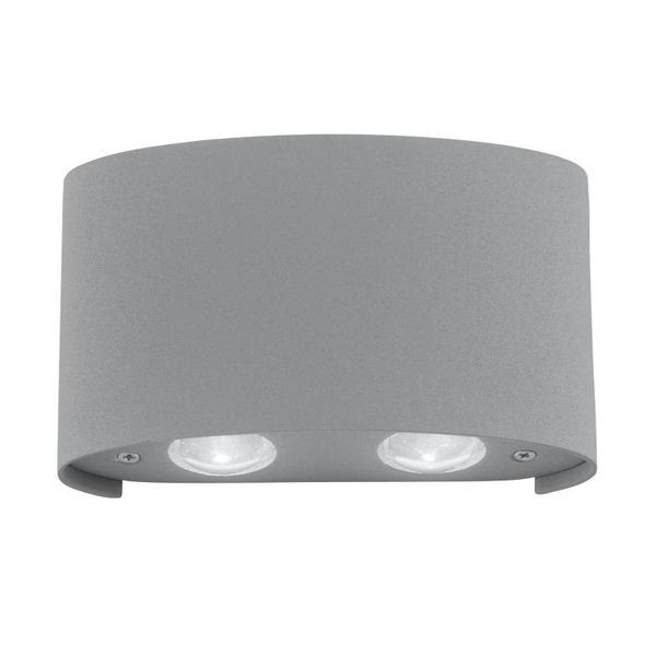 Die silberfarbene LED-Wandleuchte CARLO überzeugt mit ihrer modernen und schlichten Optik. Die Leuchte wird mit vier festverbauten 0,80 Watt LED-Leuchtmitteln geliefert. Ihr Lichteinfall strahlt nach oben und unten ab, dies wirkt zugleich dekorativ und spendet besonders viel Licht. Dank der verwendeten LED-Technik zeichnet sich die Leuchte als energiesparend aus und überzeugt dabei mit einer geringen Wärmeentwicklung sowie hohen Lebensdauer von bis zu ca. 20000 Lichtstunden auf - viele intensive Leuchtmomente sind mit ihr also garantiert. Setzen Sie einen eindrucksvollen Akzent mit der modernen LED Wandleuchte! Durch ihre Schutzart IP54 ist die Leuchte spritzwasser- und staubgeschützt und kann somit perfekt an der Hauswand platziert werden, halbrund, Up+Down, 4,5 Watt, 410 Lumen, L:13cm B:3,7cm H:8cm, IP54, Zusatz-Art.-Nr.: 100.497.87