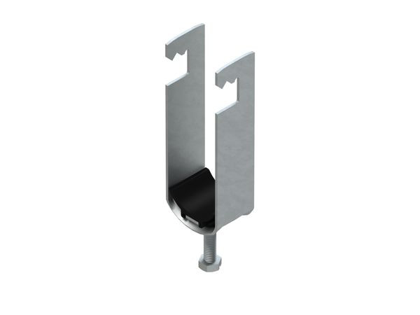 | Kurzbeschreibung | Bügelschelle, für Flacheisen 4-12 mm, für 2 Kabel, Ø 26-30 mm, Stahl, feuerverzinkt DIN EN ISO 1461, mit Kunststoffdruckwanne |