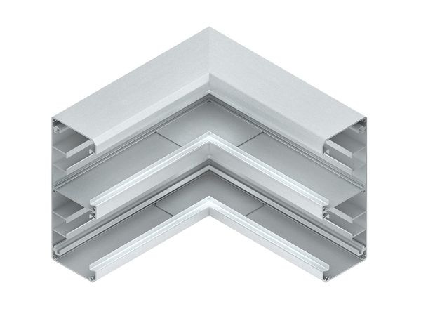 Doppelzügiges Gerätekanal-Inneneck 90°, mit zwei mittels Trennprofil getrennten, gleich großen Leitungszügen, der Potentialausgleich erfolgt über die Potentialausgleichsbrücke GPB 63-2, bitte gesondert bestellen. VDE zertifiziert! Abmessungen (ca. Maße) H x T : 220 x 80 mm Schenkellänge innen : 200 mm Deckelöffnungen : 78 mm + 78 mm Oberfläche : naturanodisiert Werkstoff : Aluminium