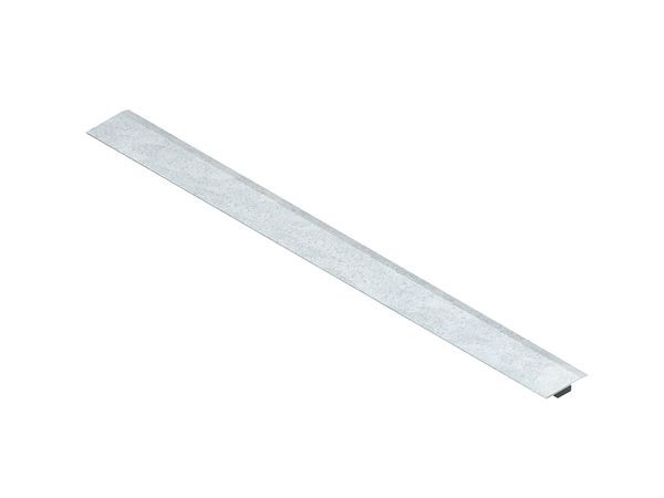 Deckelstoßleiste, Y-förmig, zur Abdeckung der rechtwinkligen Deckelstoßstellen sowie für horizontal winklige Schnittkanten an Kabelrinnendeckel mit vollflächig erhabener Riffelung und vorgeprägten Ausbrechöffnungen des begehbaren Kabelrinnensystems, die Montage erfolgt über die Einschubtasche der Deckelstoßleiste, die auf den Deckel aufgesteckt wird, der anschließende Deckel wird bis zur Einschubtasche unterhalb der Abkantung aufgeschoben. Verwendbar für : Deckel RDRS ...-2.0 S sowie für entsprechende Formstückdeckel Abmessungen (ca. Maße) Breite B : 295 mm für Deckelbreite : 300 mm Materialstärke t : 0,5 mm Y - Einschubhöhe : 3 mm Deckelstoßstellenüberdeckung : 27 mm Werkstoff : Stahl, bandverzinkt DIN EN 10346