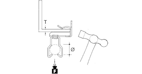 E-Klips, Universal-Flanschkralle mit Rohrclip, zum Aufschlagen mit dem Hammer auf verschiedenste Trägerflansche, Rohrclip an Flanschkralle drehbar, für Rohrabhängung. für Flanschstärke T : 8 - 14 mm Klemmtiefe der Flanschkralle : 33 mm für Rohr-Ø : 22 - 29 mm Tragfähigkeit F : 0,11 kN Werkstoff : Stahl, mechanisch verzinkt/passiviert nach DIN EN ISO 9227