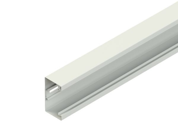 Gerätekanalunterteil, einzügig symmetrisch, mit Schlaufen und rückwärtiger Befestigungslochung zur flexiblen Montage auf Wand oder Wandkonsole, durchgehende Schlaufen zur Aufnahme von Trennprofilen im Rückenteil, Sichtflächen in RAL Farbton gemäß Herstellerkatalog elektrostatisch pulverbeschichtet, Gerätemontage im Leitungszug mit einrastbarer Gerätedose für Einbauprogramme mit 80 mm Abdeckrahmen und 60 mm Befestigungsspur, Geräteeinbau ohne Lochblenden, einschließlich 3 Kabelhalteklammern GKF 78 je 2 m Lieferlänge, für den Potentialausgleich zwei Stoßstellenverbinder GSVA... je Stoßstelle, bitte gesondert bestellen. VDE zertifiziert! Bei der Montage ist darauf zu achten, dass die Schlaufenöffnungen nach oben zeigen. Um einen festen Sitz des Deckels zu erzielen, müssen die Kabelhalteklammern GKF... im Abstand von 0,6 m - 0,7 m im Kanalunterteil eingesetzt werden. Abmessungen (ca. Maße) Höhe H x Tiefe T : 110 x 70 mm Deckelöffnung : 78 mm einreihige horizontale Rückenlochung : 7 x 33 mm mittiger Lochabstand : 62,5 mm Schlaufenabstand RasterMaße : 250 mm Lieferlänge L : 2000 mm Nutzbarer Querschnitt : 6452 mm² Farbton : [Kundenangabe erforderlich] RAL : [Kundenangabe erforderlich] Werkstoff : Stahl, bandverzinkt nach DIN EN 10346