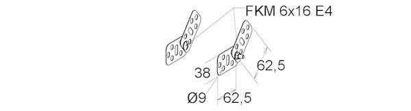 Gelenkverbinder, vertikal, schraubbar, zur Erstellung von vertikalen Winkelverbindungen von durchlaufenden Kabelrinnen, anteilmäßiges Befestigungszubehör FKM 6X16 E4 bitte gesondert bestellen, halogenfrei. Verwendbar für : GFK-Kabelrinne KK 50... GFK-Kabelrinne KKL 50... Bedarf : 1 Paar (2 Stück) je Stoßstelle Abmessungen (ca. Maße) H : 38 mm Schenkellänge L : 62,5 mm Materialstärke t : 0,8 mm Befestigungslochung, zweireihig : Ø 9 mm mittiger Abstand : 30 mm Reihenabstand : 20 mm mittige Befestigungslochung : Ø 9 mm mittiger Abstand : 55 mm vertikale mittige Langlochung : 9 x 19 mm Werkstoff : Edelstahl, Werkstoff Nr. 1.4404, AISI 316L