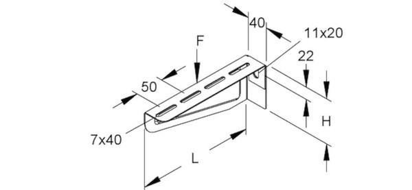Hängestiel- und Wandausleger, mittelschwer, zur Wand- und Hängestielmontage, einschließlich anteilmäßigen Befestigungszubehör. Die Tragfähigkeitsangaben gelten nur bei ausreichender Verankerung mit dem tragenden Untergrund bzw. bei vorschriftsmäßigen Montagen an Hängestielen. VDE zertifiziert! Hergestellt mit 60% CO2-reduziertem Stahl! Abmessungen (ca. Maße) Auflagehöhe H : 80 mm Auflagelänge L : 210 mm Tragfähigkeit F bei L/2 : 1,2 kN im System geprüft Werkstoff Ausleger : Stahl, bandverzinkt nach DIN EN 10346