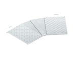 Deckel, rutschsicher R10 gemäß DIN EN 16165, schwere Ausführung, mit vollflächig aufgenieteten schwerem Aluminiumriffelblech und unverlierbar vormontierten Drehriegelverschlüssen, höhenunabhängiger Deckel für den Bogen 45° der begehbaren Kabelrinnen. Andere Antirutschbeläge auf Anfrage lieferbar. Zur Unterstützung des begehbaren Deckels bitte die Mindestanzahl an Trennstegen beachten (siehe Trennstege RTSKQ... AL, RTSQF... und RW...-...)! Verwendung für : Bogen 45° RBAS ... Abmessungen (ca. Maße) B (innen) : 505 mm Materialstärke t gesamt : 6 mm Die Materialstärke setzt sich aus 2 mm Stahlblech, 2,5 mm Aluminiumblechauflage und 1,5 mm Riffelhöhe zusammen. Werkstoff : Stahl, bandverzinkt nach DIN EN 10346 Aluminium, blank