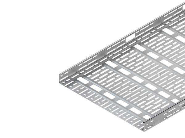 Kabelrinne nach DIN EN 61537, mit 30% Lochanteil, mit versetzt angeordneter Boden- und Seitenperforation für eine stufenlose Anbringung der Systembauteile, für die Kabel- und Leitungsdurchführung sind Seiten- und Bodenauslässe eingebracht, einschließlich zwei schraubenlose Stoßstellenverbinder RVC 60. Abmessungen (ca. Maße) H x B : 60 x 600 mm Materialstärke : 1 mm Boden- und Seitenauslässe : 30 x 65 mm Lieferlänge : 3000 mm Nutzbarer Querschnitt : 35800 mm² Werkstoff : Stahl, bandverzinkt nach DIN EN 10346