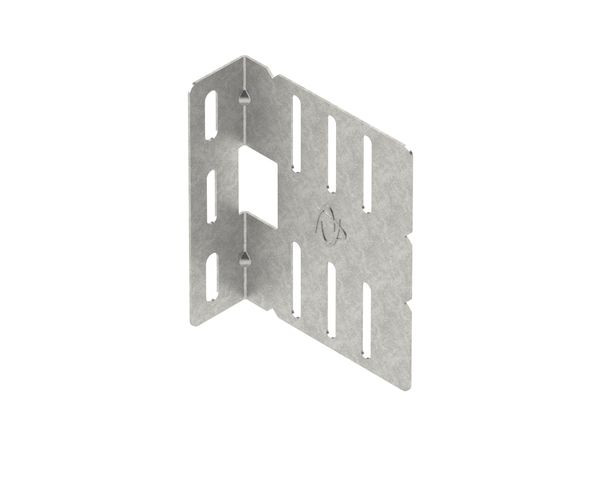 Steigetrassenwinkel, asymmetrisch, mit Systemlochung, zur vertikalen Verbindung von Kabelrinnen mit 100 mm und 110 mm Kantenhöhe im begehbaren System, zur Befestigung an Wand oder runden Betonsockel sowie zur Bügelschellenbefestigung BU.../BUK... im Steigkanal, einschließlich anteilmäßigen Befestigungszubehör. Eingebrachte Kerben definieren die genaue Lage am Seitenholm des Steigkanals und dienen als Hilfestellung für den genauen Abstand der Rinnen zueinander. Durch die paarweise Anordnung sowie die genaue Positionierung ist ein Fluchten der Ankerschienen 2986/... bzw. 2997Z/... durch die mittige Aussparung problemlos möglich. Zur optionalen Fixierung der Schienen an die Steigetrassenwinkel 2 UGM 8 je vertikaler Befestigungsstelle bitte gesondert bestellen. Bedarf : 2 Stück je vertikaler Befestigungsstelle Verwendung für : begehbare Kabelrinnen mit 100 mm und 110 mm Kantenhöhe Abmessungen (ca. Maße) Höhe H x Wand-/Betonsockelbefestigungslasche : 119 x 40 mm Breite B : 150 mm Materialstärke t : 1,5 mm Wand-/Betonsockelbefestigungslochung : 9 x 30 mm Ankerschienenbefestigungslochung : 7 x 33 mm Rinnenbefestigungslochung : 7 x 47 mm mittiger Abstand : 90 mm Reihenabstand : 25 mm mittige Ankerschienenaussparung : 23,5 x 41,5 mm Werkstoff : Stahl, bandverzinkt nach DIN EN 10346