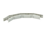 GFK-Bogen 90°, groß, pultrudiert, mit ungelochten Seitenholmen, jedoch mit Verbinderlochungen sowie mit nach oben offenen ungelochten Sprossen aus C-Profil mit ca. 15 mm Schlitzweite, zur Herstellung von horizontalen 90° Eckverbindungen, anteilmäßiges Befestigungszubehör bitte gesondert bestellen, halogenfrei. Bei der Montage ist auf Folgendes zu achten: - Bei der Verbindung des Formstückes ist eine Montagedistanz von ca. 30 mm zu berücksichtigen. - Das Formstück muss an jedem Kabelleiterzugang mit Auslegern unterstützt werden. - Ist der Radius > 250 mm und/oder die Breite > 400 mm, sollte eine zusätzliche mittlere Unterstützung vorgesehen werden. - Um eine ordnungsgemäße Montage zu gewährleisten, müssen die Verbinder an jedem Kabelleiterzugang mit 4 FKM 6X20 E4 verschraubt sein. GFK-Bogen 90° mit Verbindungslaschen (1) aus Edelstahl auf Anfrage. GFK-Bogen 90°, groß mit ungelochten Sprossen zur Realisierung des Radius R900 auf Anfrage. Die Stoßstellenverbinder ULGH 100/150 und ULIH 100 E4 sind nicht im Lieferumfang enthalten (bitte gesondert bestellen). Verwendung für : GFK-Kabelleiter UL 100... GFK-Kabelleiter ULL 100... Abmessungen (ca. Maße) H x B : 100 x 600 mm Abmessungen außen : 720 mm + B Radius R : 600 mm Werkstoff : UP-GF (glasfaserverstärkter Polyester) Werkstoff Schrauben : Edelstahl, Werkstoff Nr. 1.4404, AISI 316L Farbton : kieselgrau RAL : 7032 (ähnlich)