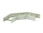 GFK-Bogen 90°, pultrudiert, mit ungelochten Seitenholmen, jedoch mit Verbinderlochungen sowie mit nach oben offenen gelochten Sprossen aus C-Profil mit ca. 15 mm Schlitzweite, zur Herstellung von horizontalen 90° Eckverbindungen, anteilmäßiges Befestigungszubehör bitte gesondert bestellen, halogenfrei. Bei der Montage ist auf Folgendes zu achten: - Bei der Verbindung des Formstückes ist eine Montagedistanz von ca. 30 mm zu berücksichtigen. - Das Formstück muss an jedem Kabelleiterzugang mit Auslegern unterstützt werden. - Ist der Radius > 250 mm und/oder die Breite > 400 mm, sollte eine zusätzliche mittlere Unterstützung vorgesehen werden. - Um eine ordnungsgemäße Montage zu gewährleisten, müssen die Verbinder an jedem Kabelleiterzugang mit 4 FKM 6X20 E4 verschraubt sein. GFK-Bogen 90° mit Verbindungslaschen (1) aus Edelstahl auf Anfrage. Die Stoßstellenverbinder ULGH 100/150 und ULIH 100 E4 sind nicht im Lieferumfang enthalten (bitte gesondert bestellen). Verwendung für : GFK-Kabelleiter UL 100... GFK-Kabelleiter ULL 100... Abmessungen (ca. Maße) H x B : 100 x 700 mm Abmessungen außen : 345 mm + B Radius R : 250 mm C-Profillochung : Ø 10 mm mittiger Abstand : 25 mm Werkstoff : UP-GF (glasfaserverstärkter Polyester) Werkstoff Schrauben : Edelstahl, Werkstoff Nr. 1.4404, AISI 316L Farbton : kieselgrau RAL : 7032 (ähnlich)