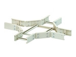 GFK-Kreuzung, pultrudiert, mit ungelochten Seitenholmen, jedoch mit Verbinderlochungen sowie mit nach oben offenen ungelochten Sprossen aus C-Profil mit ca. 15 mm Schlitzweite, zur Herstellung von horizontalen 90° Kreuzungen, anteilmäßiges Befestigungszubehör bitte gesondert bestellen, halogenfrei. Bei der Montage ist auf Folgendes zu achten: - Bei der Verbindung des Formstückes ist eine Montagedistanz von ca. 30 mm zu berücksichtigen. - Das Formstück muss an jedem Kabelleiterzugang mit Auslegern unterstützt werden. - Ist die Breite > 400 mm, sollte eine zusätzliche mittlere Unterstützung vorgesehen werden. - Um eine ordnungsgemäße Montage zu gewährleisten, müssen die Verbinder an jedem Kabelleiterzugang mit 4 FKM 6X20 E4 verschraubt sein. GFK-Kreuzung mit Verbindungslaschen (1) aus Edelstahl auf Anfrage. Die Stoßstellenverbinder ULGH 80/150 und ULIH 80 E4 sind nicht im Lieferumfang enthalten (bitte gesondert bestellen). Verwendung für : GFK-Kabelleiter UL 80... GFK-Kabelleiter ULL 80... Abmessungen (ca. Maße) H x B : 80 x 400 mm Länge in Hauptrichtung : 690 mm + B Länge in Abgangsrichtung : 345 mm + B Radius R : 250 mm Werkstoff : UP-GF (glasfaserverstärkter Polyester) Werkstoff Schrauben : Edelstahl, Werkstoff Nr. 1.4404, AISI 316L Farbton : kieselgrau RAL : 7032 (ähnlich)