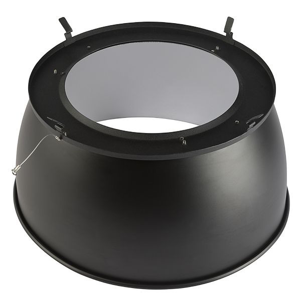 Für eine bestmögliche Ausleuchtung reflektiert der Alu-Reflektor das großflächig abgegebene Licht der SMD-LEDs kegelförmig mit einem Abstrahlwinkel von 60° (raumstrahlend)Material: Aluminum pulverbeschichtet; außen schwarz/innen silber