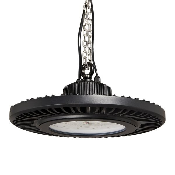Bei der Industrie- und Hallenbeleuchtung kommt es vor allem auf Eigenschaften wie Langlebigkeit, Funktionalität und Unempfindlichkeit an. Der Hallentiefstrahler vereint die perfekt passende Helligkeit mit einer langen Lebensdauer und der notwendigen Widerstandsfähigkeit. Das große Plus sind der hohe Lichtstrom und die starke Leistung, die erstklassige Lichtlösungen für Ihr Projekt möglich machen. Zudem erspart die runde Bauform eine Ausrichtung bzw. Fluchten im Rahmen der Installation. Mit der hohen Schutzart IP65 und einer Schlagfestigkeit von IK10 ist das LED High Bay bestens für raue Betriebsbedingungen geeignet. Zudem ist der Strahler schwefel- und ammoniakbeständig. Anwendungsbereiche: Hohe Räume, Hallen, Lager, Fertigungsstätten, Messe- und Ausstellungshallen Farbwiedergabeindex Ra 80; Farbabstand (MacAdam): 4 SDCM Lebensdauer: 50.000 h (L80 B10) Betriebsgerät integriert: dimmar 1-10V Montage: Ein-Punkt-Aufhängung an mittig angeordneter Ringöse mittels Gliederkette Bitte beachten: Gliederkette für die Pendelabhängung nicht im Lieferumfang enthalten Material: Aluminium pulverbeschichtet Schutzabdeckung: gehärtetes klares Glas Abmessungen (ØxH): 388x172 mm