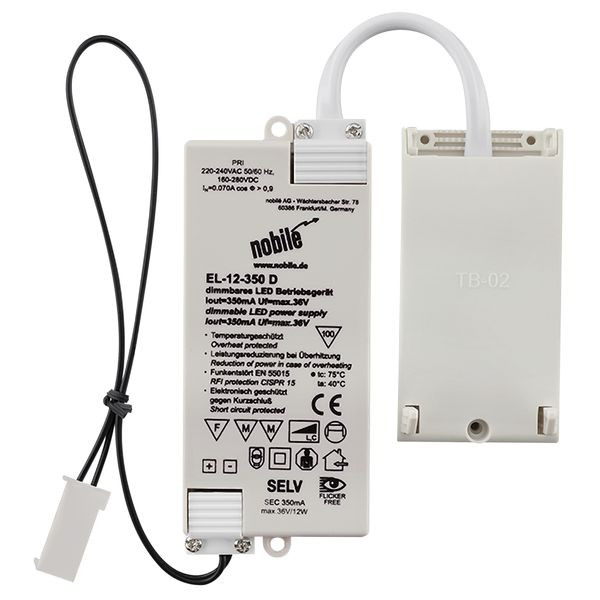 Dimmbares LED Betriebsgerät nur zum Einbau in die Zwischendecke. Anschlussart primärseitig: Anschlussbox mit Durchgangsverdrahtung (L, N, PE); Steckklemmen Anschlussart sekundär: abgedeckte Schraubklemmen 0,25-0,75 mm² mit AMP-Buchse