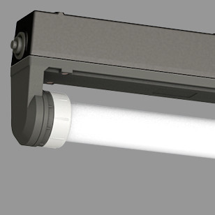 Kunststoffleuchte mit LED-Beleuchtungseinsatz. Einsetzbar in industriellen Anwendungen.Witterungsbeständiges Leuchtengehäuse aus duroplastischem Kunststoff, ahnlich RAL 9010 und RAL 9005. Einsetzbar im Innen- und Außenbereich gemäß Schutzart IP 65. Lampen- und Geräteraum thermisch getrennt. Kurzes Dichtungssystem bestehend aus alterungsbeständigem formstabilem Silikon-/Synthese-Kautschuk.Wahlweise mit Lampenschutzrohr 38 mm oder mit schwenkbarem Schutzrohrreflektor aus PMMA Transopal® (schlagzäh) oder PC Tropal® (bruchsicher) mit innenliegendem Aluminiumreflektor (MIRO-SILVER®). Leuchte montage- und anschlussfertig. Leuchte mit intergriertem Betriebsgerät AC/DC. Zwei stirnseitige Kabeleinführungen M20. Einzel- oder Lichtbandmontage. Deckenbefestigung durch zwei Bügelschellen aus Kunststoff, variabler Befestigungsabstand.