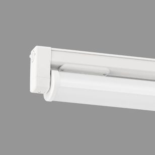 Leuchte für Deckenanbau aus Kunststoff mit LED-Bestückung, 1- oder 2-lampig. Einsetzbar in industriellen Anwendungen und in Bereichen mit besonderen Schutzanforderungen. Witterungs- und UV-beständiges Leuchtengehäuse aus glasfaserverstärktem Kunststoff, ähnlich RAL 9010. Einsetzbar im Innen- und Außenbereich gemäß Schutzart IP 65 (1- oder 2-lampig). Lampen- und Geräteraum thermisch getrennt. Kurzes Dichtungssystem bestehend aus alterungsbeständigem, formstabilem Silikon-/Synthese-Kautschuk. Schutzrohrreflektor mit Verschlusssystem für einfachen LED-Wechsel (easy eXchange LED), unabhängig voneinander schwenkbar, aus PMMA Transopal® (schlagzäh) oder PC Tropal® (bruchsicher) mit innenliegendem Aluminiumreflektor (MIRO-SILVER®). Arretierung des Schutzrohrreflektors in 10°-Schritten möglich. Leuchte montage- und anschlussfertig. Eingebautes Betriebsgerät 230 V AC/DC. Zwei Anschlussdeckel, zwei stirnseitige Kabelmembrane M20. 2 kV Transientenfilter. Einzel- oder Lichtbandmontage. Deckenbefestigung durch zwei Befestigungsklammern aus Edelstahl, variabler Befestigungsabstand.