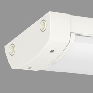 Leuchte für Deckenanbau aus Kunststoff mit LED-Bestückung. Einsetzbar in U-Bahnhöfen, Fußgängerunterführungen, Personentunnel, Passerellen, Parkhäusern oder Schwimmbädern. Flaches, witterungs- und UV-beständiges Leuchtengehäuse aus glasfaserverstärktem Kunststoff, ähnlich RAL 9010, mit niedriger Aufbauhöhe. Einsetzbar im Innen- und Außenbereich gemäß Schutzart IP 65. Lampen- und Geräteraum thermisch getrennt. Kurzes Dichtungssystem bestehend aus alterungsbeständigem, formstabilem Silikon-/ Synthese-Kautschuk. Lampenabdeckung aus PMMA Transopal® (schlagzäh) oder PC Tropal® (bruchsicher) mit innenliegendem Aluminiumreflektor (MIRO-SILVER®). Leuchte montage- und anschlussfertig. Eingebautes Betriebsgerät 230 V AC/DC. Zwei große Anschlussdeckel 370 mm, vier Kabelmembrane M20. 2 kV Transientenfilter. Einzel- oder Lichtbandmontage. Deckenbefestigung durch montagefreundliche Schlitzscheiben. Unverlierbare Gehäusedeckel.