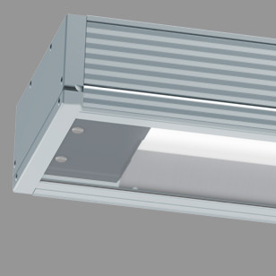 Leuchte für Deckenanbau und Deckeneinbau aus Aluminium mit LED-Bestückung. Einsetzbar in U-Bahnhöfen, Fußgängerunterführungen, Personentunnel, Passerellen, Parkhäusern, Schwimmbädern, Sporthallen, Verkehrsflächen und unter Überdachungen. Silberfarbig eloxiertes Aluminium-Profilgehäuse. Abklappbare Abschlussscheibe. Einsetzbar im Innen- und Außenbereich gemäß Schutzart IP 65. Schutzklasse II. LED-Einheit für einfachen LED-Wechsel (easy eXchange LED) aus PMMA Transopal® (schlagzäh) in 10° Schritten schwenkbar mit verpolungssicherem Anschlussstecker. Abschlussscheibe aus PMMA (schlagzäh) oder PC (bruchsicher) glasklar mit Dekor-Siebdruck. Innenliegender Aluminiumreflektor (MIRO-SILVER®). Eingebautes Betriebsgerät, Versorgungsspannung 230 V AC/DC. Durchgangsverdrahtung 4 x 1,5 mm². Anschlussfertig über zwei rückwärtige Kabelmembrane. 2 kV Transientenfilter. Montage an zwei rückwärtigen, verdeckten Befestigungsbohrungen.