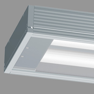 Leuchte für Deckenanbau und Deckeneinbau aus Aluminium mit LED-Bestückung. Einsetzbar in U-Bahnhöfen, Fußgängerunterführungen, Personentunnel, Passerellen, Parkhäusern, Sporthallen, Verkehrsflächen und unter Überdachungen. Silberfarbig eloxiertes Aluminium-Profilgehäuse, ähnlich RAL 9006. 285 mm Profilbreite mit geringer Aufbauhöhe. Werkzeuglos zu öffnende Abschlussscheibe. Einsetzbar im Innen- und Außenbereiche gemäß Schutzart IP 65. Dichtungssystem bestehend aus alterungsbeständigem, formstabilen Silikon / Synthese-Kautschuk. Schutzklasse II. Zwei LED-Einheiten für einfachen LED-Wechsel (easy eXchange LED), unabhängig von einander in 10° Schritten schwenkbar. Die Lichtverteilungskurve der Leuchte wird bauseitig eingestellt.Abschlussscheibe aus PMMA (schlagzäh) oder PC (bruchsicher) glasklar mit Dekor-Siebdruck. Innenliegender Aluminiumreflektor (MIRO-SILVER®). LED-Einheiten mit verpolungssicheren Anschlusssteckern. Eingebautes Betriebsgerät, Versorgungsspannung 230 V AC/DC. Anschlussfertig über zwei rückseitige Kabelmembrane. Einzelmontage. Montage an vier rückwärtigen, verdeckten Befestigungsbohrungen.