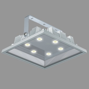 Strahlerleuchte mit LED-Array-Bestückung. Einsetzbar in geräumigen oder extrem hohen Industriehallen, in Fertigungsbereichen mit der Anforderung hoher Beleuchtungsstärken oder bester Farbwiedergabe, Sporthallen, Industriekränen und -anlagen. Robustes Leuchtengehäuse aus korrosionsbeständigem Aluminium-Druckguss, lackiert, ähnlich RAL 9006. Einsetzbar gemäß Schutzart IP 65. Mit alterungsbeständiger, formstabiler Dichtung aus Silikon-/ Synthese-Kautschuk. Druckausgleichssystem mit Klima-Membran gegen Kondensatbildung im Gehäuse. Abschlussscheibe aus PC (bruchsicher) glasklar oder Sicherheits-Abschlussglas, glasklar (ESG). Innenliegender Aluminium-Reflektor mit Aufnahme für eine Prismenscheibe zur rotationssymmetrischen Entblendung (DDP). Engstrahlende Ausführung mit speziell abgestimmten Einzelreflektoren (MIRO-SILVER®). Leuchte montage- und anschlussfertig. LED-Betriebsgerät, thermisch getrennt. Versorgungsspannung 230-240 V AC/DC. Einzelmontage. Deckenbefestigung durch Schwenkbügel oder Vorbereitung für Pendelabhängung inkl. vier Ringschrauben. Seil- und Deckenbefestigung sind bauseits zu liefern.