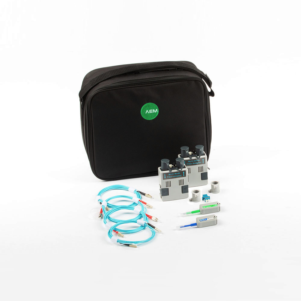 "Das Multimode-Dämpfungsmesskit für den AEM TestPro macht aus dem Gerät einen vollwertigen TIER 1 - LWL-Zertifizierer. Es bietet eine vollwertige LWL-Zertifizierung nach ISO 11801/14763-3, TIA 568.3 oder gegen Übertragungsstandards wie IEEE 802.3 oder FiberChannel. Die Messung erfüllt die Vorgaben der ISO/IEC 14763-3 an EF-Konformität und verfügt über Wellenlängen 850/1300 nm. Die Adapter verfügen jeweils über eine sichtbare Laserlichtquelle (VFL) und einen zweipoligen Anschluss zum Messen von Zweidraht-Kupferleitungen von LWL-Kupfer-Hybridstrecken."