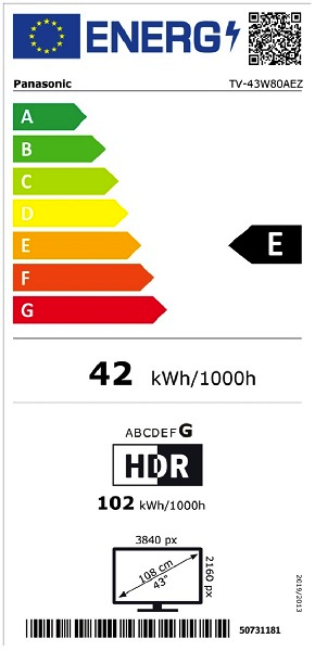 | Energieeffizienzklasse (2019/2013/EU) | E |