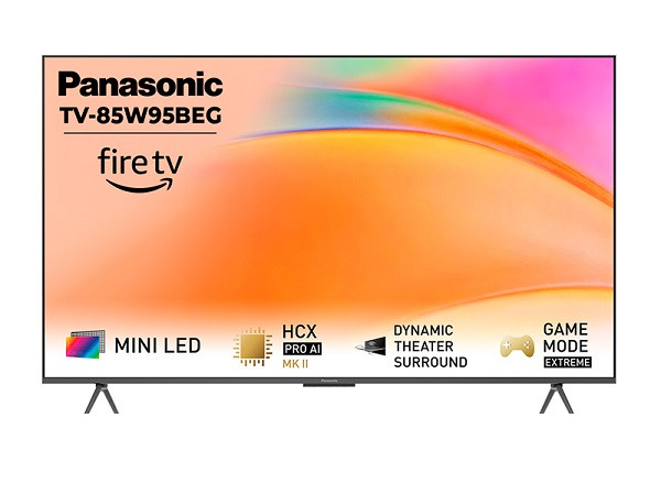 Der Panasonic TV-85W95BEG ist ein beeindruckender 85-Zoll (216 cm) Mini-LED-Fernseher mit 4K UHD-Auflösung (3.840 x 2.160 Pixel) und VA-Display. Mit nativen 100 Hz und adaptiven 144 Hz ist er ideal für flüssiges Gaming. Der leistungsstarke HCX Pro AI Processor MK II sorgt zusammen mit 10-Bit-Technologie und Ultimate Contrast für erstklassige Bildqualität. HDR-Formate wie Dolby Vision IQ, HDR10+ Adaptive und HLG werden unterstützt. Für kraftvollen Klang sorgt ein 50-Watt-RMS-Audiosystem mit integriertem Subwoofer und Dolby Atmos im Downfire-Prinzip. Ein externer Subwoofer kann über einen 3,5-mm-Klinkenausgang angeschlossen werden. Dank Penta-Tuner mit Twin-Konzept ist der Empfang über DVB-C/T2/S2, IPTV oder TV>IP möglich. Vier HDMI-2.1-Anschlüsse (mit eARC, VRR, HFR, G-Sync) und drei USB-Ports (inkl. 1x USB 3.0) bieten umfangreiche Anschlussmöglichkeiten. Die Aufnahmefunktion (PVR) ist ebenfalls verfügbar. Die smarte Panasonic PREMIUM Fire TV-Oberfläche mit Webbrowser und Sprachsteuerung rundet das Paket ab. Das Gerät wiegt 36 kg (ohne Fuß) und 37 kg (mit Fuß), ist VESA-kompatibel (600 x 400 mm) und gehört zur Energieeffizienzklasse F. Ideal für Heimkino-Fans mit höchsten Ansprüchen an Bild, Ton und Ausstattung.