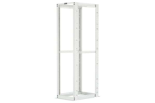 4-Posten-Racks vereinen die Stabilität eines Schranks und die Zugänglichkeit eines offenen Racks für maximale Flexibilität. Das 45-RU-Rack ist insgesamt 23 Zoll breit (mit 19-Zoll-Standard-EIA-Befestigung) und 30 Zoll tief. Es verfügt über anpassbare Montageschienen mit Käfigmutter, EIA Universal-Befestigungslochintervall und vorgedruckte Nummerierung. Das Rack ist mit verschiedenen Kabelführungen und Zubehör kompatibel. Das Rack ist für 2.500 lbs Ul-gelistet und besteht aus einer geschweißten Stahlkonstruktion. Das Rack ist weiß.