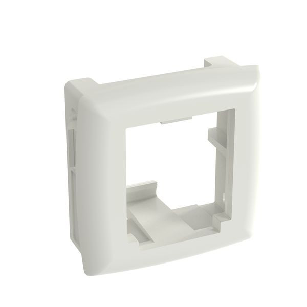 Dieser Mini-Com™ Adapter rastet in 1“ x 1“ (25 mm x 25 mm) große Öffnungen ein, nimmt ein Mini-Com Modul auf, Cremeweiß.