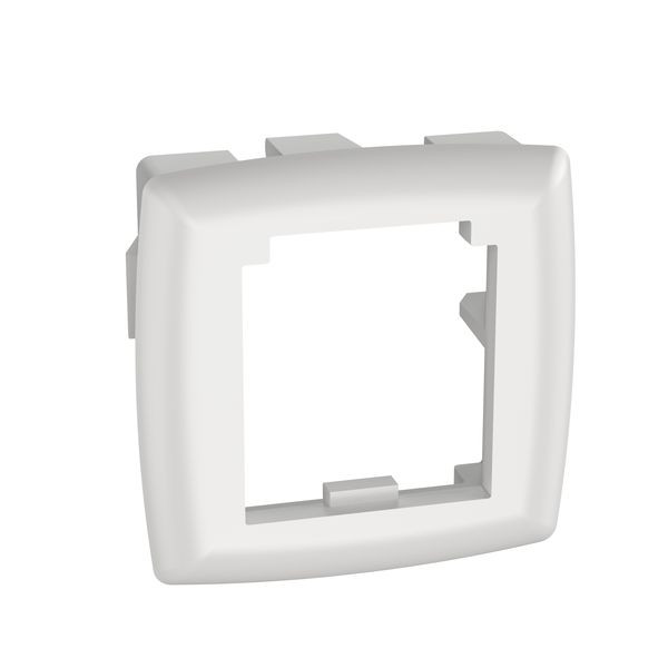 Dieser Mini-Com™ Adapter rastet in 1“ x 1“ (25 mm x 25 mm) große Öffnungen ein, nimmt ein Mini-Com Modul auf, Weiß.