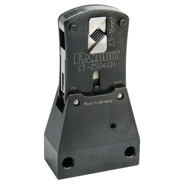 Crimpkopf für den Einsatz mit den Panduit Crimp-Werkzeugen CT-2500 , CT-2500/E, CT-2500/L und CT-2500/LE. Crimpt Panduit Nr. 8-6 AWG Einzelkabel-Endhülsen und Panduit Nr. 10 AWG-Doppelkabel-Endhülsen. Quadratisches Crimpprofil.