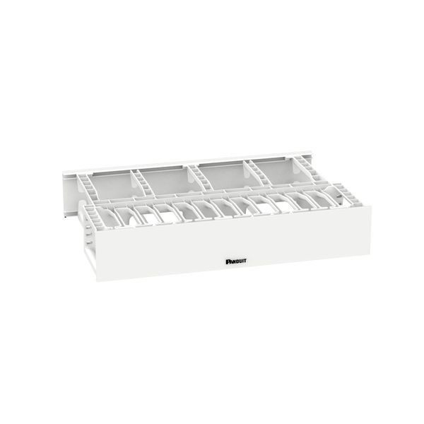 Die horizontale NetManager™ Kabelführung für hohe Kapazität organisiert und schützt kosteneffektiv Kupfer- und Glasfaserkabel in jedem standardmäßigen EIA 19" (483mm)-Rack oder Schrank. Große Öffnungen an den vorderen Fingern ermöglichen die komfortable Aufnahme von Kabeln der Kategorie 6 und 6A, wodurch sich Installationszeit und Instandhaltungskosten verringern lassen. Die zweiseitige Kabelführung ist 2 RU und verfügt über vordere und hintere Abdeckungen mit Scharnieren. Die Führung ist weiß.