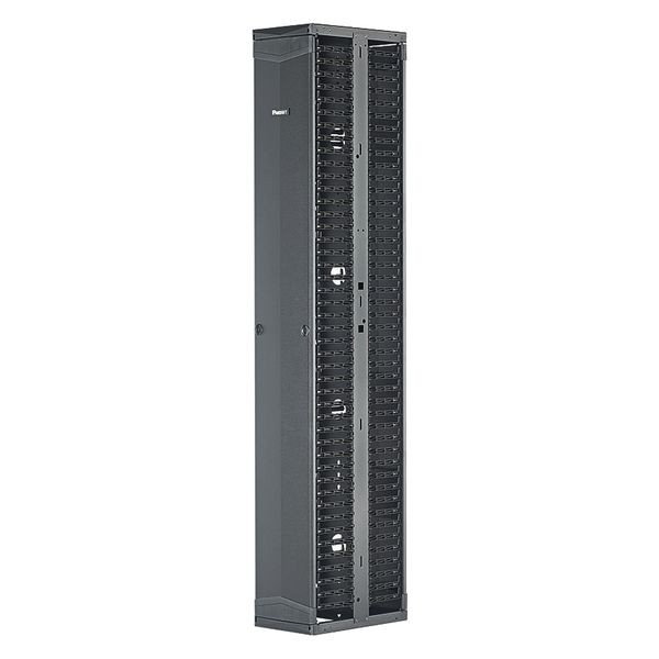 Die vertikale PatchRunner™ 2 Kabelführung verbindet hohe Dichte mit Vielseitigkeit und minimiert den Platzbedarf. Die vollständig vormontierte Kabelführung senkt die Gesamtkosten. Die Zweiseiten-Kabelführung hat einen Metall-Backbone mit aus Kunststoff vorgeformten Fingern; zwei Metalltüren voller Länge (2 Scharniere), die durch Zudrücken geschlossen werden. Die Führung ist 42 RU, 12 Zoll breit, Farbe Schwarz.