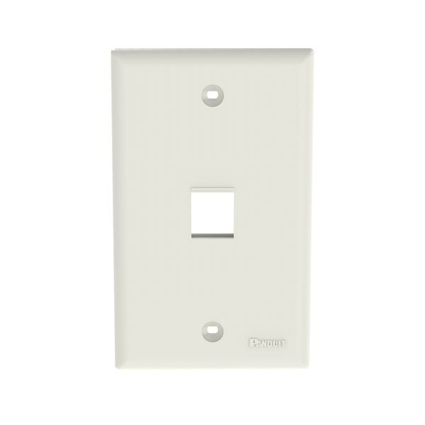 Die NetKey® Geräteblende nimmt ein Keystone-Modul auf. Die Ein-Band-Geräteblende wird an einer NEMA-Standard-Ein-Band-Öffnung montiert. Die Geräteblende lässt sich mit einem selbstklebenden Etikett identifizieren und ist cremeweiß.
