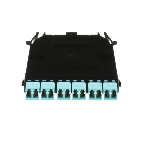 Die HD Flex™ Kassette ist OM3 MPO bis LC und unterstützt insgesamt 12 Fasern. Standard-Einlassdämpfung mit Standardpolarität nach Methode A. Die Kassette verfügt über eine schwarze Abdeckung mit 2 schwarzen MPO-Verbindern und 6 Duplex LC-Adaptern (aqua), integrierte Klappen schützen vor Kontamination.