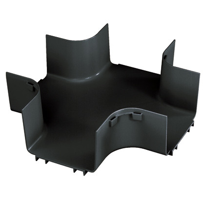 Das FiberRunner® 6x4 4-Wege-Kreuzstück wird an 6x4-Kanäle und/oder Systemverbinder angebracht, um eine horizontale Vier-Wege-Kreuzung mit zwei 6x4-Ausgängen zu schaffen.