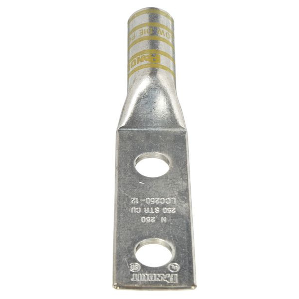 Zwei Löcher, langer Trommelkabelschuh, 250-kcmil-Kabel, 1/2 Schraubloch, Lochabstand 1,75.