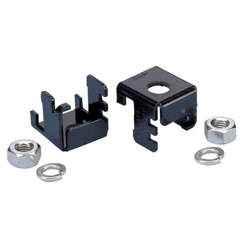 Die zweiteilige Halterung wird an einer Kabeltrassenschiene mit den Maßen 3/8" (9,5 mm) breit x 1 1/2" (38,1 mm) oder 3/8" (9,5 mm) breit x 2" (50,8 mm) befestigt. Die Halterungshälften gleiten in Position und klemmen auf der Kabeltrassenschiene zusammen, was eine einhändige Montage der Gewindestange ermöglicht (nicht im Lieferumfang enthalten). Mit Halterung und Zubehör zum Befestigen der Halterung an der Kabeltrasse.