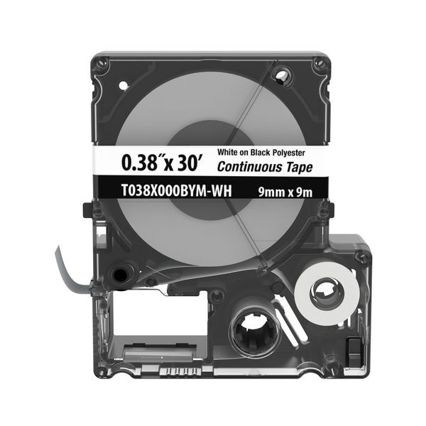Die Kassette T038X000BYM-WH mit durchlaufendem Band beinhaltet sowohl Etikettenmaterial als auch Band für das einfache Wechseln der Etiketten. Benutzerdefinierte Rohrmarkierungen, Spannungsmarkierungen, Schilder, Behältermarkierungen und Netzwerkkennzeichnungsetiketten auf Anfrage. Nur für flache Etikettenanwendungen. Zur Verwendung mit MP300-, MP200-, MP100- und MP75-Druckern. Polyester. 0,38" x 30' (9 mm x 9,1 m). Farbe Weiß auf Schwarz. 1 Kassette pro Packung.