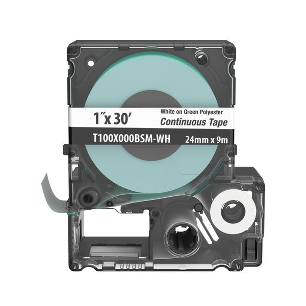 Die Kassette T100X000BSM-WH mit durchlaufendem Band beinhaltet sowohl Etikettenmaterial als auch Band für das einfache Wechseln der Etiketten. Benutzerdefinierte Rohrmarkierungen, Spannungsmarkierungen, Schilder, Behältermarkierungen und Netzwerkkennzeichnungsetiketten auf Anfrage. Nur für flache Etikettenanwendungen. Zur Verwendung mit MP300, MP200- und MP100-Druckern. Polyester. 1,0" x 30' (25,4 mm x 9,1 m). Farbe Weiß auf Hellgrün. 1 Kassette pro Packung.